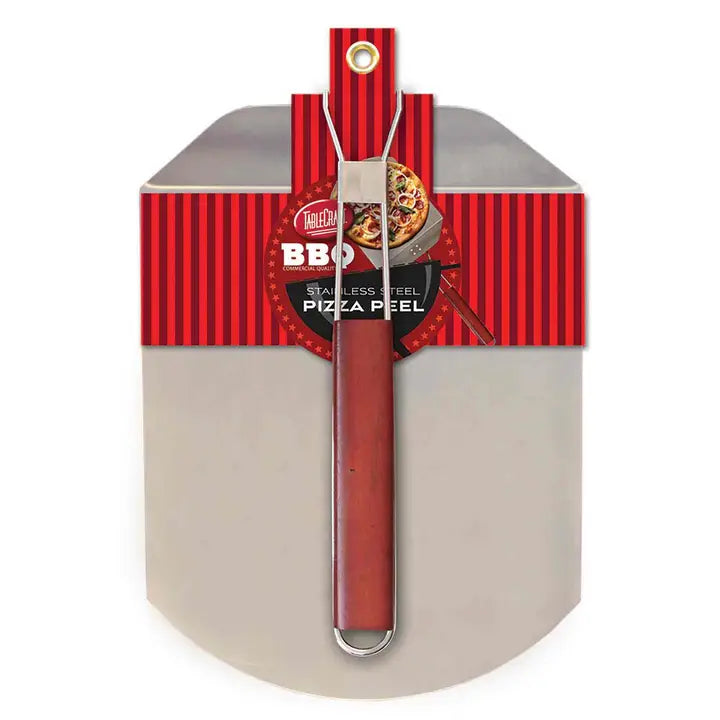 Create delicious grilled pizza with our Pizza Peel. The thin steel of the paddle is best for sliding under tender dough as it cooks on the grill. The wooden handle can be folded over, or hung on a hook, for easy storage.