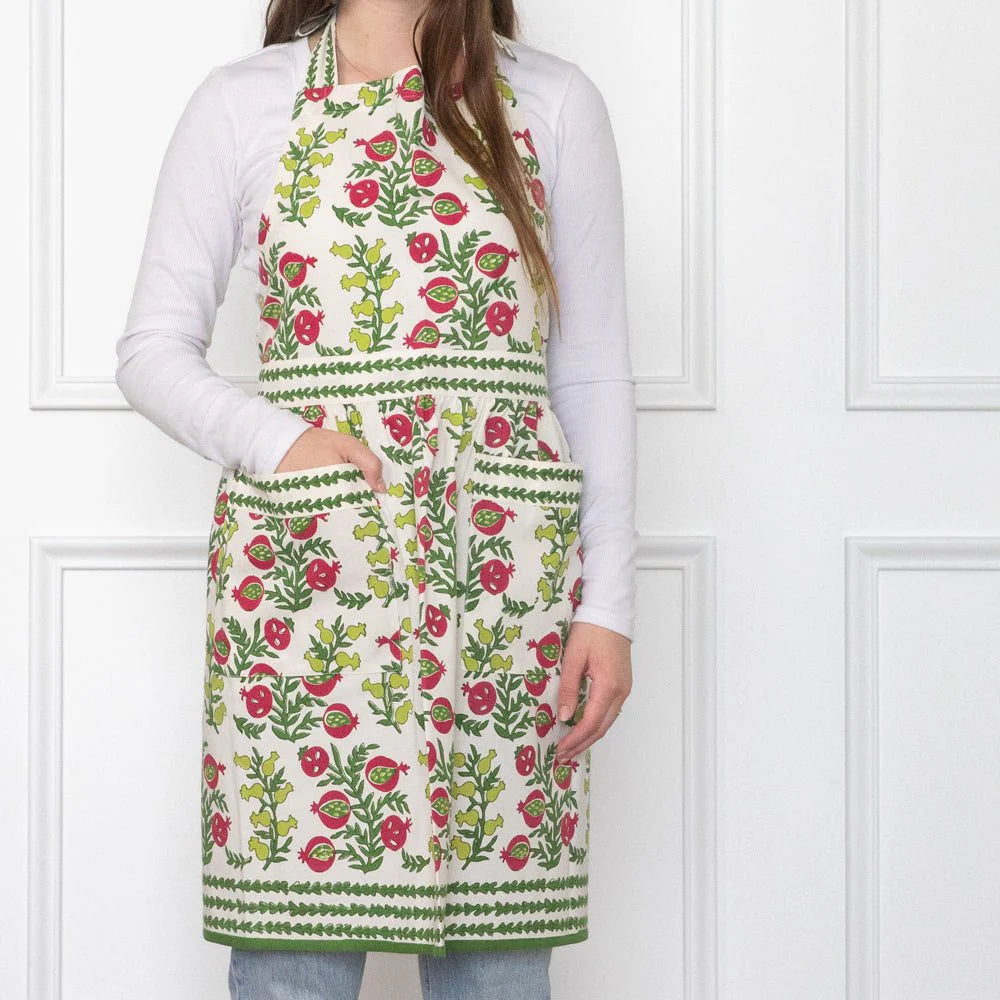 "What are Pom Bells"? you ask...well, those baby buds do look like bells don't they? Re-imagined every season in at least one new color way, this cheerful design is a nod to ancient Turkish wall hangings as well as hand appliqué repeats. Each version sets a new tone, surprising us all when palettes are finalized. Magenta colored pomegranates dance across this print framed by basil green vines and succulent green little "bells".